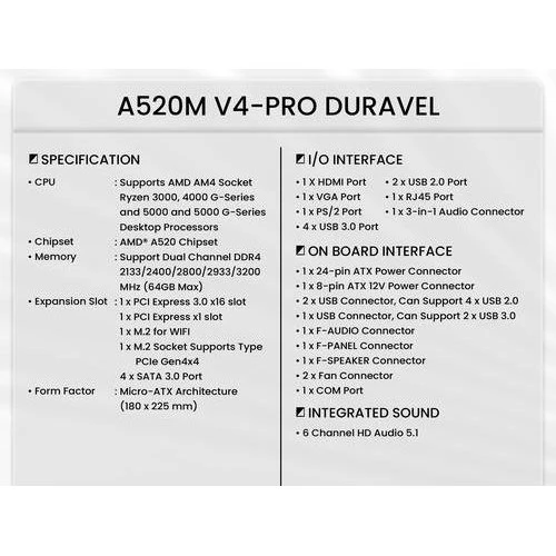 Motherboard Vurrion DURAVEL A520M V4-PRO AMD A520 AM4 Socket DDR4