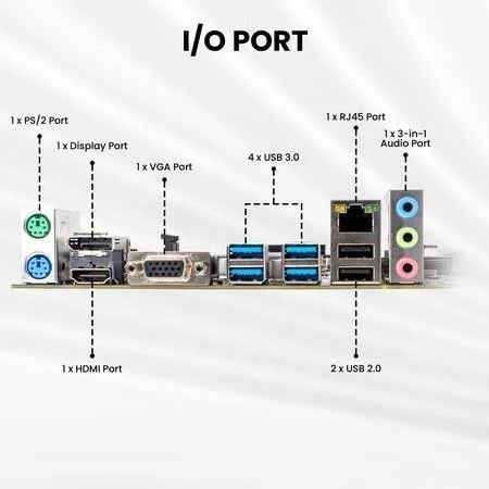 Garansi Resmi 2 Tahun By PT Asia Global Suksesindo Motherboard – Motherboard Vurrion B660M V4-PRO Lga 1700 ◩ SPECIFICATION • CPU : Supports 14th, 13th & 12th Gen Intel Core Processors (LGA1700) • Chipset : Intel B660 • Memory : Support Dual Channel DDR4 2133/2400/2800/2933/3200MHz (64GB Max) Support XMP Memory Overclock • Expansion Slot : 1 x PCI Express 4.0 x16 slot 1 x PCI Express x1 slot 1 x M.2 for WIFI 2 x M.2 Socket Supports Type PCIe Gen4x4 3 x SATA 3.0 Port • Form Factor : M-ATX Architecture (190 x 240 mm) ◩ I/O INTERFACE • 1 X HDMI Port • 1 x Display Port • 1 x VGA Port • 1 x PS/2 Port • 4 x USB 3.0 Port • 2 x USB 2.0 Port • 1 x RJ45 Port • 1 x 3-in-1 Audio Connector ◩ ON BOARD INTERFACE • 1 x USB Connector Support Additional 2 USB 2.0 Ports • 1 x USB Connector Support Additional 2 USB 3.2 Ports • 1 x 24-pin ATX Power Connector • 1 x 8-pin ATX Power Connector • 1 x COM Connector • 1 x Front Panel Audio Connector • 1 x System Panel Connector ◩ INTEGRATED SOUND • Chip Integrated by Realtek ALC897 VURRION TECHNOLOGY HAS NO LIMIT