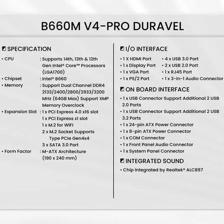 Motherboard Vurrion DURAVEL B660M V4-PRO Intel B660 LGA 1700 DDR4