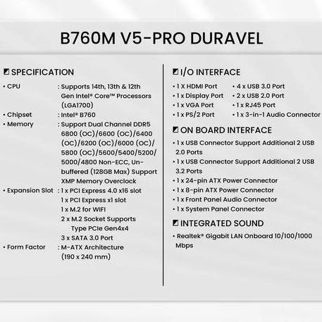 Motherboard Vurrion DURAVEL B760M V5-PRO Intel B760 Lga 1700 DDR5