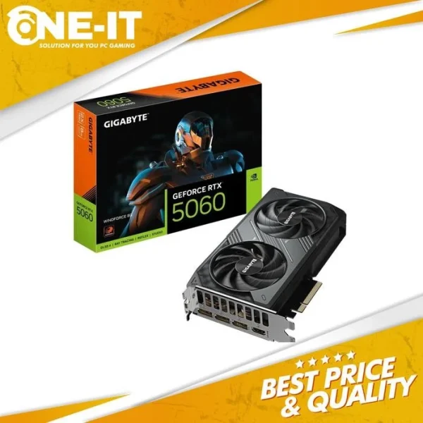 FEATURESPowered by the NVIDIA Blackwell architecture and DLSS 4Powered by GeForce RTX 5060Integrated with 8GB GDDR7 128bit memory interfaceWINDFORCE cooling systemHawk fanServer-grade Thermal conductive gelReinforced structureWINDFORCE COOLING SYSTEMThe WINDFORCE cooling system delivers exceptional thermal performance through a combination of cutting-edge technologies. It features server-grade thermal conductive gel, innovative Hawk fans with alternate spinning, composite copper heat pipes, a copper plate, 3D active fans, and screen cooling.Graphics Processing GeForce RTX 5060Core Clock 2497MHzCUDA Cores 3840Memory Clock 28 GbpsMemory Size 8 GBMemory Type GDDR7Memory Bus 128 bitCard Bus PCI-E 5.0Digital max resolution 7680x4320Multi-view 4Card size L=199 W=116 H=40PCB Form ATXDirectX DirectX 12 APIOpenGL 4.6Recommended PSU 450WPower Connectors 8 Pin1Output DisplayPort 2.1b3 HDMI 2.1b *1Accessories Quick guide