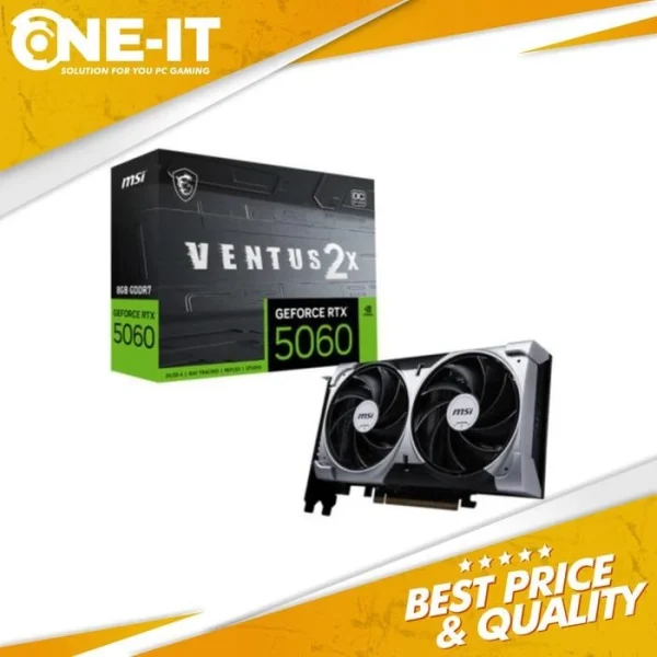 Marketing Name GeForce RTX 5060 8G VENTUS 2X OC Model Name G5060-8V2C Graphics Processing Unit NVIDIA GeForce RTX 5060 Interface PCI Express Gen 5 x16 (uses x8) Core Clocks Extreme Performance: 2535 MHz (MSI Center), Boost: 2527 MHz CUDA CORES 3840 Units Memory Speed 28 Gbps Memory 8GB GDDR7 Memory Bus 128-bit Output DisplayPort x 3 (v2.1b), HDMI x 1 (As specified in HDMI 2.1b: up to 4K 480Hz or 8K 120Hz with DSC, Gaming VRR, HDR) HDCP Support Y Power consumption 145 W Power connectors 8-pin x 1 Recommended PSU 550 W Card Dimension (mm) 197 x 120 x 41 mm Weight (Card / Package) 511 g / 829 g DirectX Version Support 12 Ultimate OpenGL Version Support 4.6 Maximum Displays 4 G-SYNC technology Y Digital Maximum Resolution 7680 x 4320