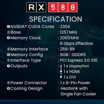 VGA VURRION RX 580 8GB DDR5 256-bit AMD 8G RX580